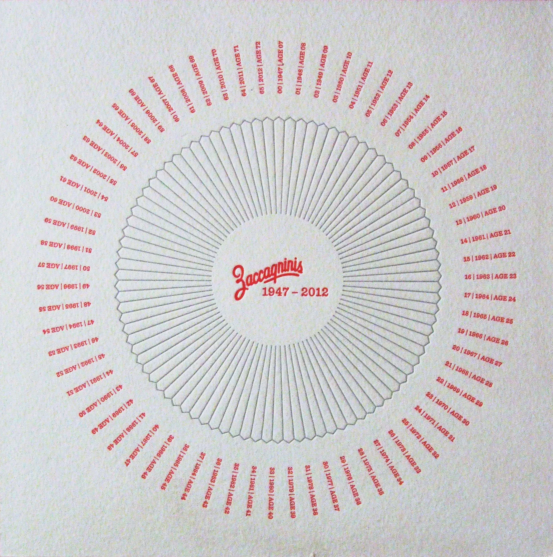 Retirement announcement for 65 year old bakery, printed 2 colors on 600 gsm Arturo cover, from supplied design with edge painting.